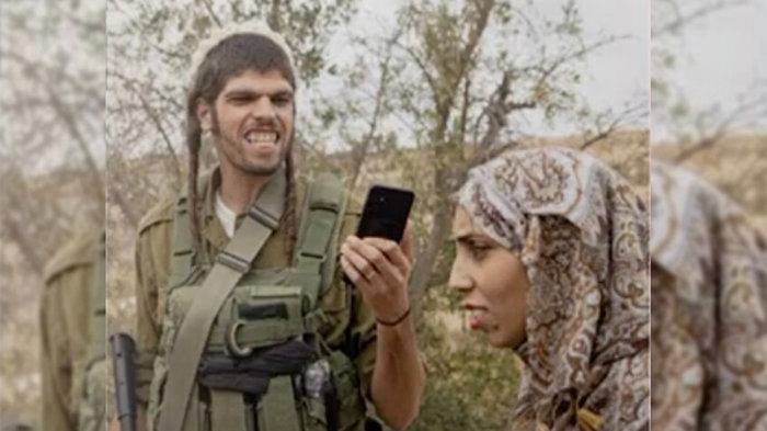 Masturzo'nun Batı Şeria'nın güneyindeki El Halil'de zeytin hasadı sırasında çektiği fotoğrafta, askeri üniformalı, Filistin topraklarını gasbeden bir İsraillinin görüntüsü, gülüşü ve Filistinli bir kadına bakışı dikkati çekti.