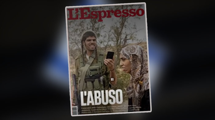 İtalya'nın önde gelen haber dergilerinden L'Espresso'nun son sayısının kapağında, askeri üniforma giyen bir yasadışı yerleşimcinin, Filistinli bir kadın ile alay eden fotoğraf karesi ile altında İtalyanca'da "istismar" anlamına gelen "L'abuso" başlığına yer vermesine, İsrail'in İtalya Büyükelçisi Jonathan Peled tepki gösterdi.