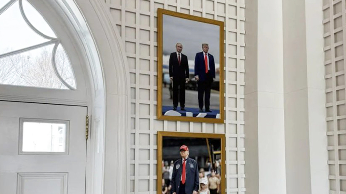 Yenilenen odanın içini gösteren fotoğraflara göre söz konusu kare, Trump ve Putin'in 15 Ağustos 2025'te Alaska'nın Anchorage kentindeki havaalanı pistinde yan yana poz verdiği anı yansıtıyor.