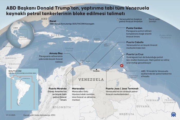 ABD Başkanı Trump, yaptırıma tabi tüm Venezuela kaynaklı petrol tankerlerinin bloke edilmesi talimatı verdiğini duyurmuştu.