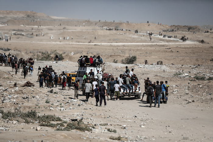 Gazze Şeridi'nde ateşkesin devreye girmesiyle beraber binlerce Filistinli Gazze Şeridi'nin güneyinden kuzeyine dönmeye başladı.