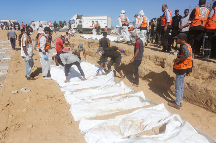 İsrail'in Gazze'de ateşkes ve esir takası anlaşmasıyla teslim ettiği, işkence sonucu bazı naaşların çürüdüğü ve bazılarının da deforme olduğu için kimliği belirlenemeyen 41 Filistinlinin daha cenazesi toprağa verildi.