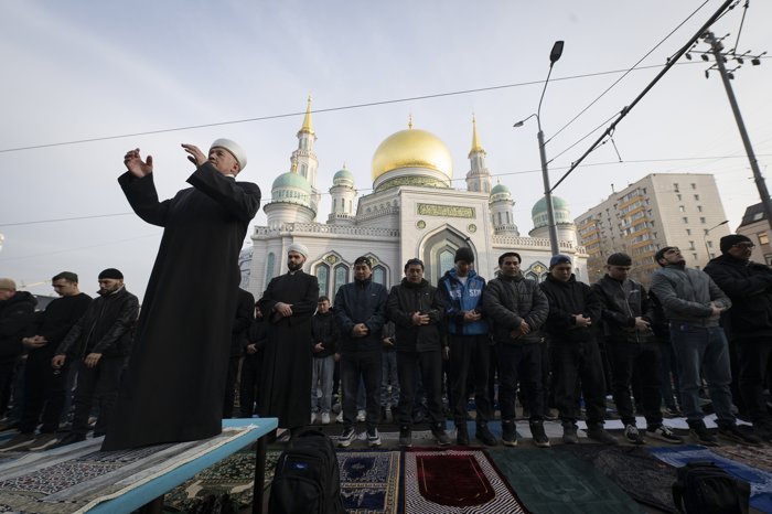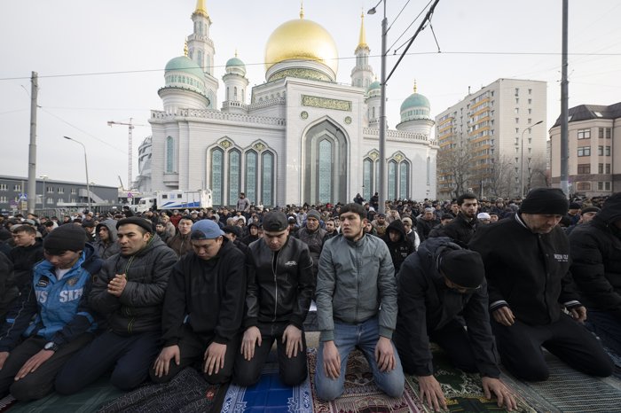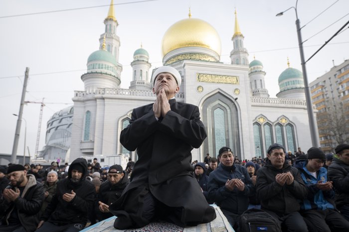 Rusya'nın başkenti Moskova'da Müslümanlar, Ramazan Bayramı namazını kılmak için camileri doldurdu.