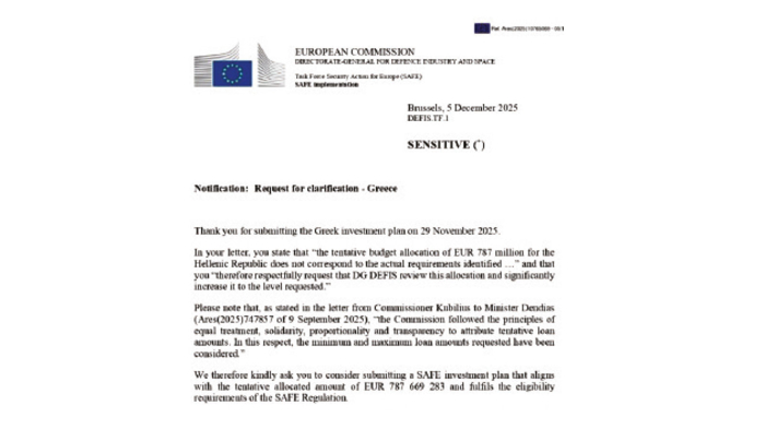 AB'nin Atina'nın planını geri çevirmesini 'Bütçede büyük sapma' başlığı ile duyuran To BHMA gazetesinde yer alan haberde Yunanistan'ın sunduğu yatırım planının toplam büyüklüğünün 2.9 milyar euro seviyesinde olduğu, ancak SAFE kapsamında Atina'ya ayrılan maksimum kredi tavanının 787 milyon euro olduğu belirtildi. Avrupa Komisyonu'nun Atina'nın sunduğu planı reddetme gerekçeleri arasında bütçenin çok yüksek olması ve SAFE'nin ortak alım, çoklu ülke iş birliği ve Avrupa savunma sanayiinin güçlendirilmesi gibi temel kriterlerine yeterince uymaması gösterildi.