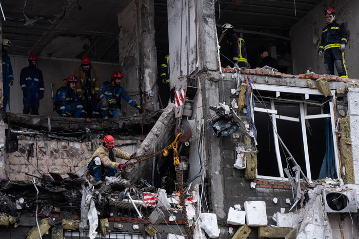 Ukrayna Devlet Başkanı Vladimir Zelenskiy sosyal medya hesabından yaptığı paylaşımda, Rusya'nın gece saatlerinden bu yana yaklaşık 500 insansız hava aracı ve 40 füze ateşlediğini duyurdu. Zelenskiy, "Birincil hedef Kiev'de enerji tesisleri ve sivil altyapı. Maalesef isabetler oldu ve apartmanlar hasar gördü. Başkentin ve bölgenin bazı semtlerinde elektrik ve ısıtma şu anda yok. Yangın söndürme çalışmaları sürüyor. Bazı enerji tesislerinde onarım ekipleri çalışmalara başladı, diğerlerinde ise personel sığınaklarda kalıyor ve hava saldırısı uyarıları sona erer ermez kurtarma ve onarım ekipleri çalışmalara başlayacak" ifadelerini kullandı.