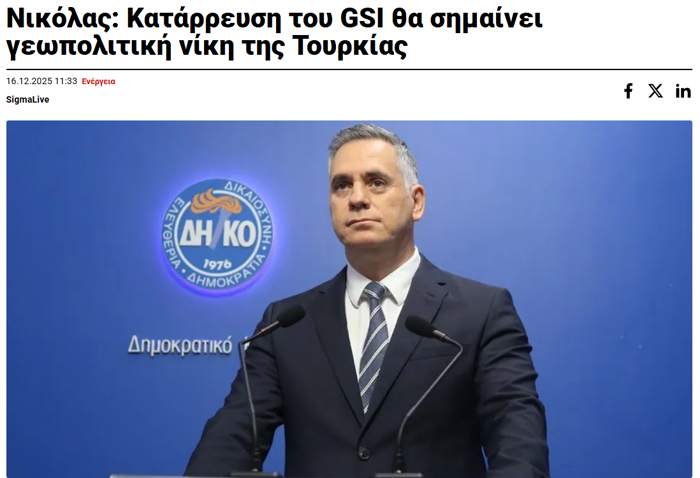 Güney Kıbrıs Rum Yönetimi (GKRY) Lideri Nikos Hristodulidis'in projenin kurtarılması sorumluluğunu bizzat üstlenmeye çağıran DIKO Başkanı, GSI'nin başarısızlığının sadece ekonomik olarak değil, ulusal ve jeopolitik olarak da felaket sonuçlar doğuracağını ve Türkiye'nin bunun başlıca faydalanıcısı olacağını ileri sürdü.