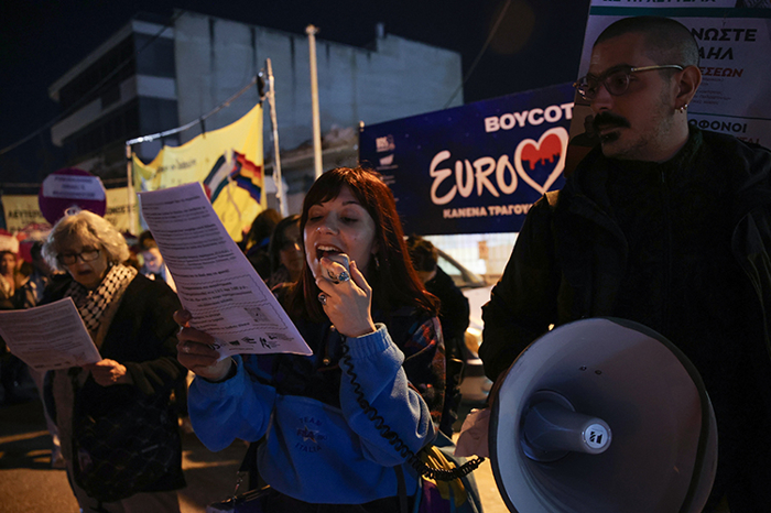 Aktivistler dağıttıkları el broşürlerinde, Yunan Devlet Televizyonu ERT'nin organizasyondan çekilmesine ve Eurovision gösterimi yapacak mekanların etkinliklerini iptal etmesine yönelik taleplerini dile getirdi.