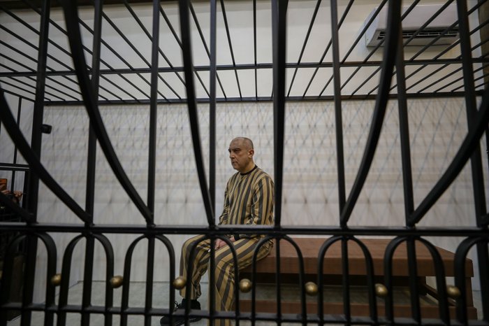Televizyonlardan canlı yayınlanan duruşmada Necib'in, mahkeme salonunda demir korkuluklar ardındaki özel bir bölümde tutulduğu görüldü.