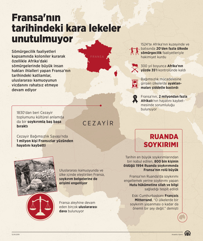 Fransa, Afrika'daki sömürgeci tarihinin en güncel ve en kanlı örneği olan Cezayir'deki suçlarını hala resmen tanımıyor. Cezayir'de her yıl 18 Şubat, Fransa sömürgesine karşı verilen mücadelede hayatını kaybedenler anısına Ulusal Şehit Günü olarak anılıyor.