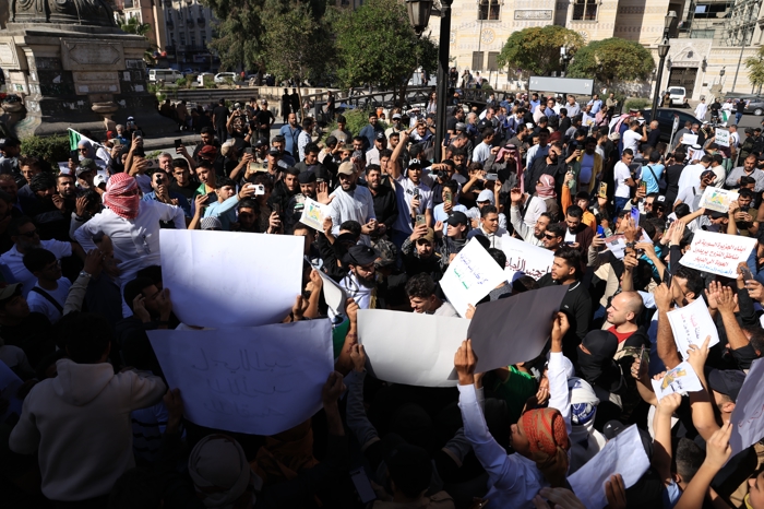 Örgütün haksız tutuklamaları, zorunlu askerlik uygulamasını ve yolsuzlukları sonlandırmasını isteyen göstericiler, Suriye hükümetinden bölgeyi terörden arındırmasını talep etti.