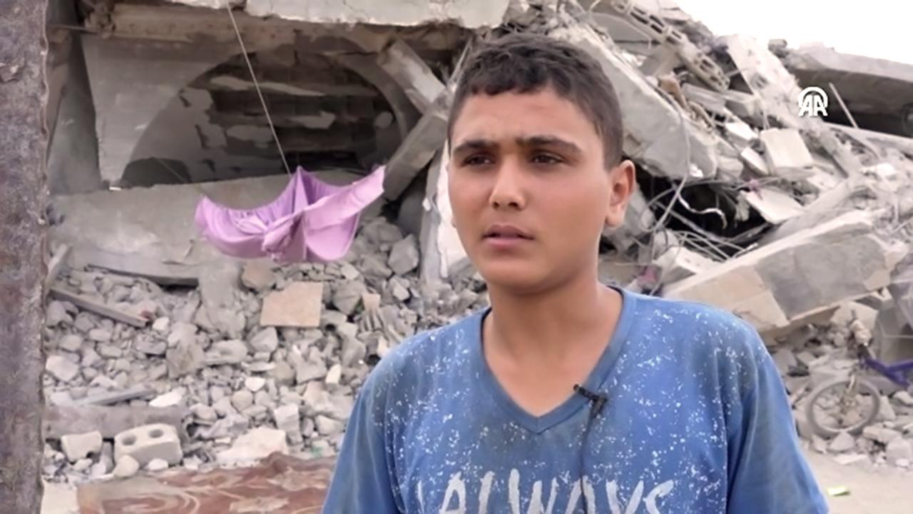 Gazze kentindeki Nafak bölgesinde yıkılan 4 katlı evlerinin enkazına çadır kurmaya çalışan Muhammed Imad Ehil (16) de eskiden yaşamış oldukları mahallenin tamamen yıkılmış olduğunu söyledi.