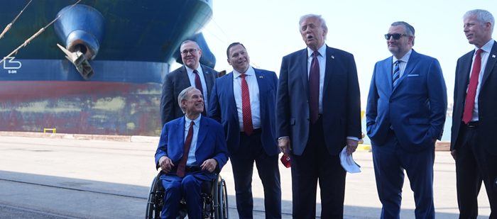 ABD Başkanı Donald Trump, ABD'nin Teksas eyaletindeki Corpus Christi Limanı'nda basına açıklamalarda bulundu.