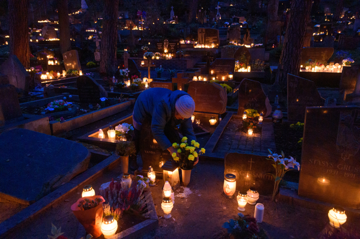 Batı Hristiyanlığının en kutsal bayramlarından biri olan Azizler Günü'nde, Vilnius'taki mezarlıklar mum ışıklarıyla aydınlandı.