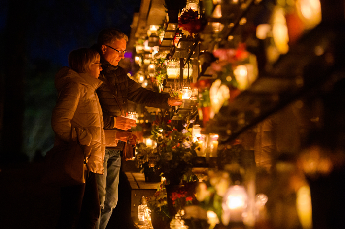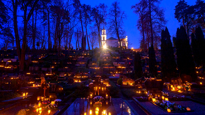 Lviv'in en eski mezarlığı olan Lychakiv Mezarlığı'nda Azizler Günü dolayısıyla binlerce lamba mezarların üzerine yerleştirildi.