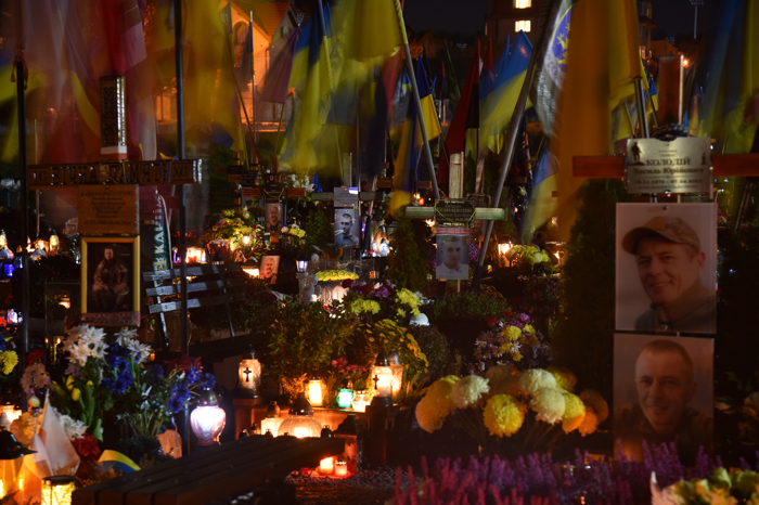 Çok sayıda kişi, Rusya-Ukrayna savaşında hayatını kaybeden Ukraynalı askerlerin mezarlarına da ışıklar bıraktı.