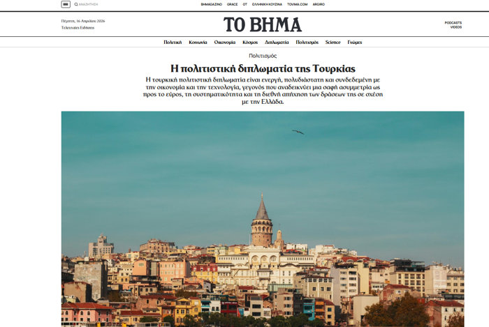 Yunanistan merkezli Tovima internet sitesinde yer alan ve Kültür Diplomasisi Doktoru ve Yunan Kültür Diplomasisi Enstitüsü Başkanı Petros D. Kapsaskis tarafından hazırlanan makale Türkiye'nin kültürel gücüne önemli vurgu yapıyor.