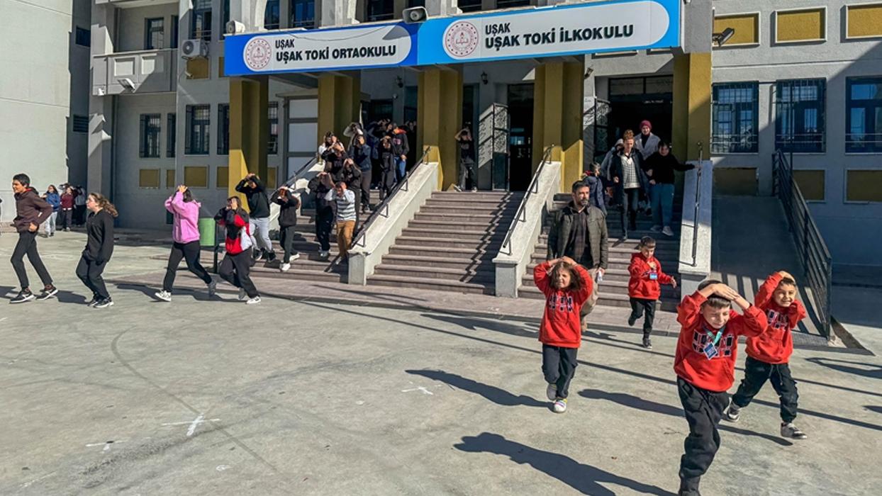 Uşak'ta kent genelinde eş zamanlı yapılan tatbikat kapsamında saat 11.00'de tüm okullarda siren çaldı.