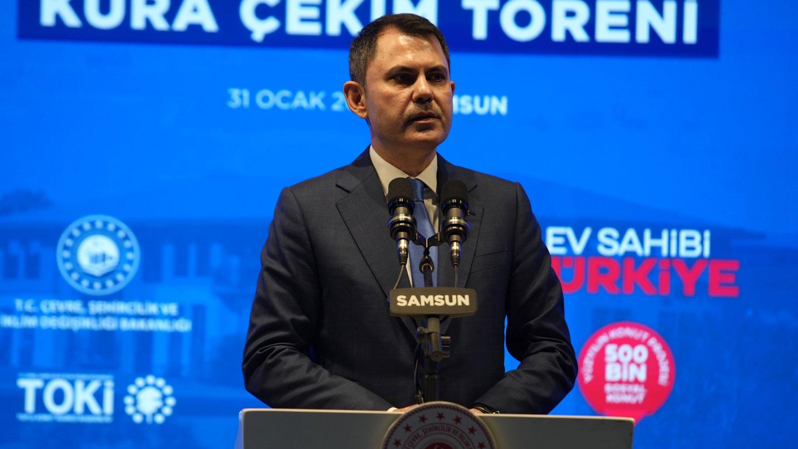 Samsun'da Ev Sahibi Türkiye Sosyal Konut Kura Çekim Töreni'nde konuşan Çevre, Şehircilik ve İklim Değişikliği Bakanı Murat Kurum, CHP Genel Başkanı Özgür Özel'in iddialarına sert tepki gösterdi.