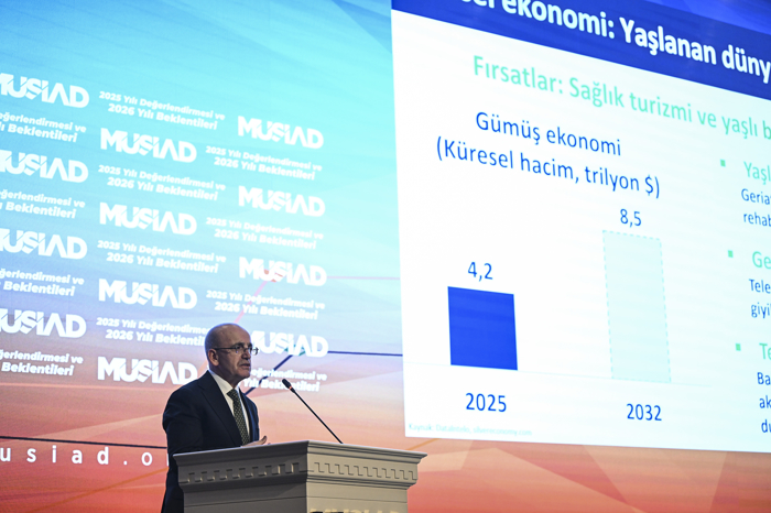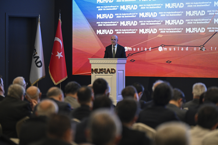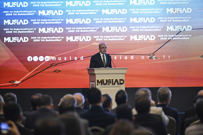 Şimşek, Müstakil Sanayici ve İşadamları Derneğinin (MÜSİAD) "2025 Yılı Değerlendirmesi 2026 Yılı Beklentileri" programındaki konuşmasında, dünyanın ciddi bir belirsizlik içinden geçtiğini, küresel ekonomi politikalarına ilişkin belirsizlik endeksinin tarihin en üst seviyelerine kadar çıktığını söyledi.
