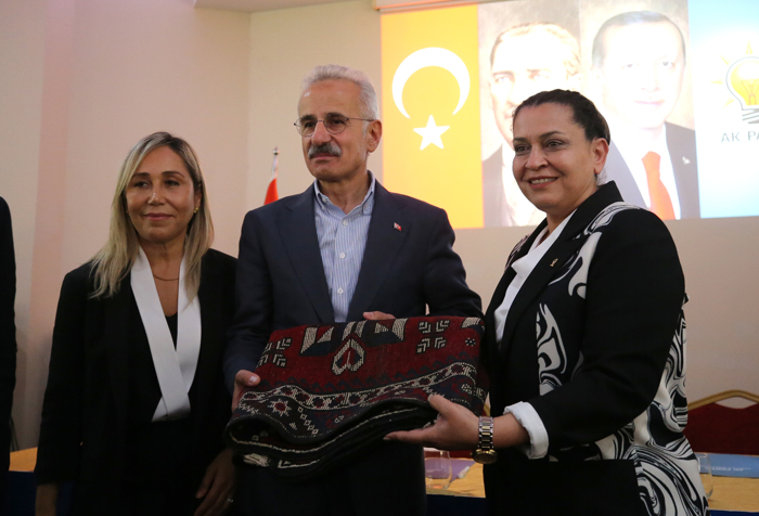 AK Parti Antalya İl Kadın Kolları Başkanı Gülçin Özboz, Uraloğlu'na Antalya'ya özgü kilim hediye etti.