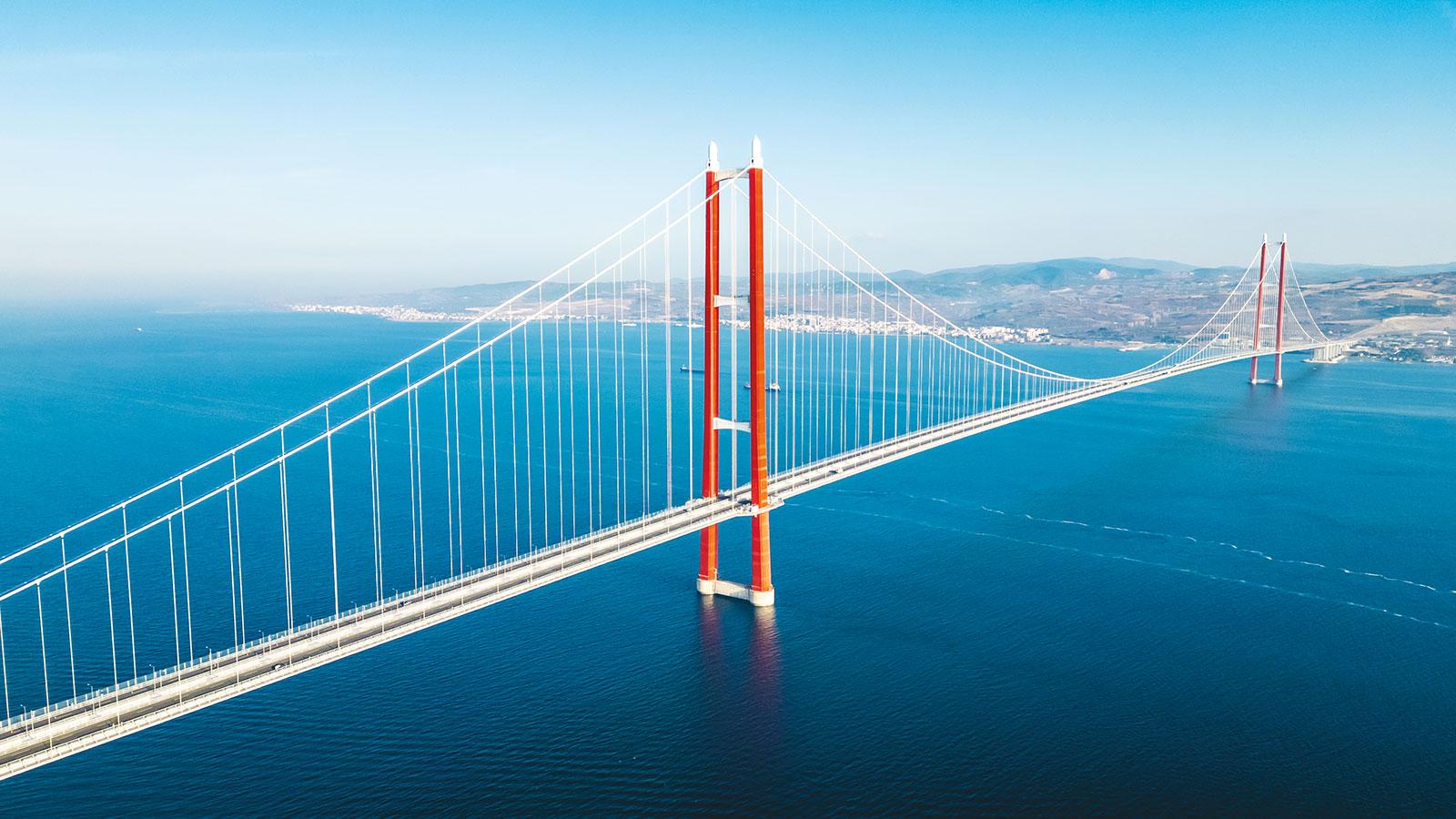 Cumhuriyet'in 100'üncü yılına atıfta bulunan 2 bin 23 metrelik orta açıklığıyla dünyanın en uzun orta açıklıklı asma köprüsü olan 1915 Çanakkale Köprüsü, Türkiye'nin en önemli ulaşım projelerinden biri olarak öne çıkıyor.