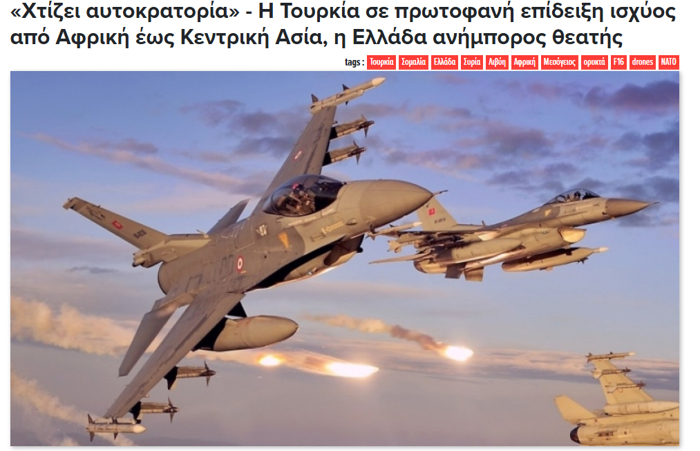 Türkiye'nin benzersiz işler başardığını belirten Yunan basını, "Ankara Batı'nın doğrudan müdahale edemediği Afrika, Orta Doğu ve Orta Asya'daki gelişmeleri etkiliyor. Yunanistan ise, Ege ve Doğu Akdeniz ile sınırlı, sınırlarının ötesinde jeopolitik arabulucu veya askeri güvenlik sağlayıcı olarak hareket etme yeteneği veya niyeti olmayan etkisiz bir oyuncu olarak kalıyor. Güç sadece silahlarla ilgili değildir. Türkiye'nin askeri gücü sadece savaş uçaklarının veya insansız hava araçlarının sayısında değil. Bu, onları kullanma konusundaki siyasi iradesinde, stratejik dışa dönüklüğünde ve askeri eylemi ekonomik ve jeopolitik faydalarla ilişkilendirme yeteneğinde yatmaktadır. Yunanistan kaliteli silah sistemlerine ve yetenekli personele sahip, ancak stratejik derinlikten, uluslararası güç ağlarından ve etki yansıtmak için uzun vadeli planlamadan yoksun. Gücün sınırlardan uzakta kullanıldığı bir dünyada Atina pasif oynuyor, sürekli olarak ABD'nin etkisine bağlı kalıyor. Ve bu, uzun vadede en tehlikeli boşluktur" ifadelerini kullandı.