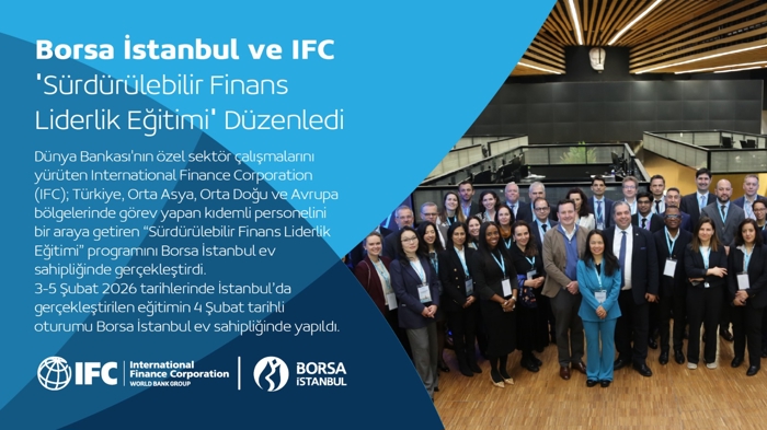 Borsa İstanbul'dan yapılan açıklamaya göre, Dünya Bankasının özel sektör çalışmalarını yürüten kuruluşu olan Uluslararası Finans Kurumunun (IFC) Türkiye, Orta Asya, Orta Doğu ve Avrupa bölgelerinde görev yapan kıdemli personelini bir araya getiren "Sürdürülebilir Finans Liderlik Eğitimi" programı Borsa İstanbul ev sahipliğinde gerçekleştirildi.