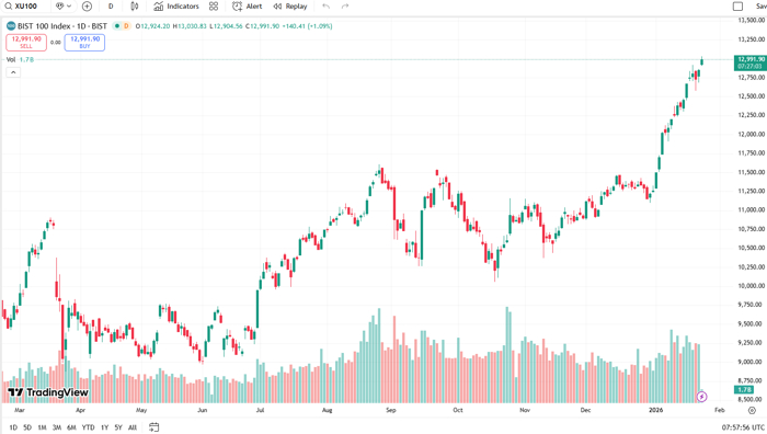 Borsa İstanbul'da BIST 100 endeksi 13.000 puanı aştı.