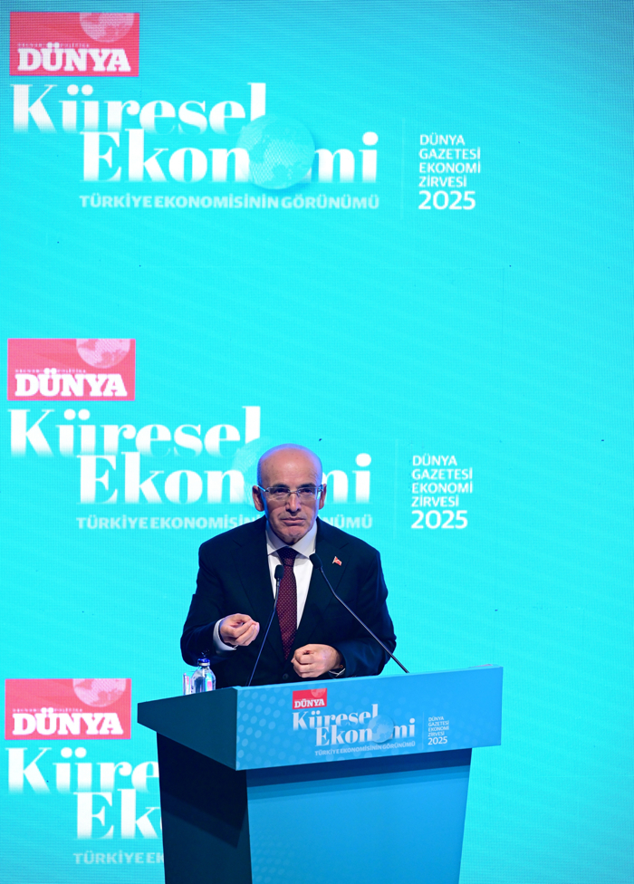 Hazine ve Maliye Bakanı Mehmet Şimşek, İstanbul Finans Merkezi Ziraat Bankası Genel Müdürlük Oditoryumu'nda düzenlenen Dünya Gazetesi Ekonomi Zirvesi'nde yaptığı konuşmada küresel ekonomideki gelişmelere değinerek, ABD-Çin arasındaki anlaşmanın gerilimi önemli ölçüde azaltacak nitelikte olduğunu, dezenflasyondaki düşüşün sürdüğünü, emtia fiyatlarının göreceli olarak istikrarlı gittiğini söyledi.