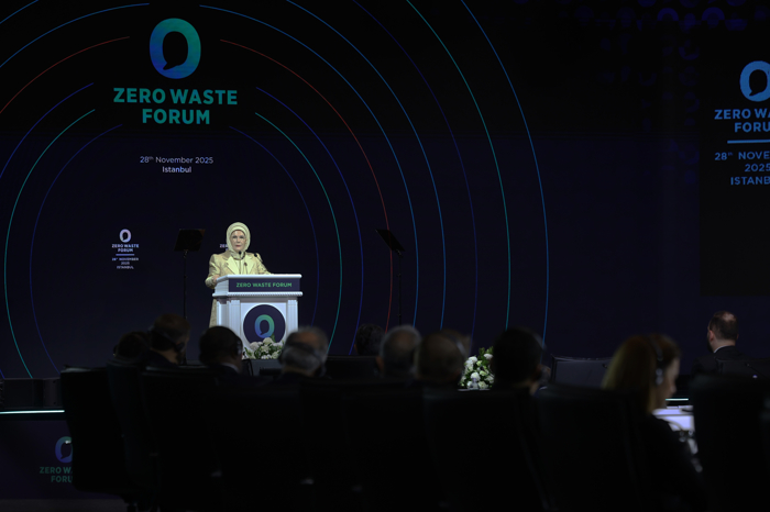Türkiye'de 2017 yılında başlattıkları Sıfır Atık yolculuklarına, her kilometresine yeni bir boyut ekleyerek devam ettiklerini belirten Emine Erdoğan, "Mesela 'Gıdanı Koru Sofrana Sahip Çık' kampanyasını düzenleyerek gıda israfı konusunda büyük bir farkındalık oluşturduk. Su stresi altında bir ülke olarak Ulusal Su Verimliliği Seferberliğini başlattık. Tüm bunların yanında, başkanlığını yürüttüğüm, Birleşmiş Milletler Sıfır Atık Danışma kurulumuzla da, dünyadaki en iyi sıfır atık uygulamalarını uluslararası gündeme taşıyoruz." diye konuştu.