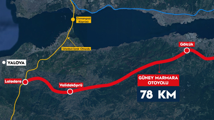 "Proje güzergahı, Yalova'nın Çiftlikköy ilçesine bağlı Laledere köyünün yaklaşık bir kilometre kuzeyinde İstanbul-İzmir Otoyolu'ndan başlayacak. Doğu istikametine devam edecek ve Valideköprü köyünde İznik-Altınova Yolu'nu keserek Gölcük'ün güneyine ulaşacak. Yuvacık Barajı'nın kuzeyinden ve Kartepe Mahallesi'nden geçip Cengiz Topel Havaalanı'nın güneyinde Ankara-İstanbul Otoyolu'na bağlanarak sonlanacak. Proje kapsamında 14 kavşak, toplam uzunluğu 27,9 kilometre olan 8 tünel, toplam 3,3 kilometrelik 9 viyadük ve 3,6 kilometrelik 51 köprü inşa edeceğiz."