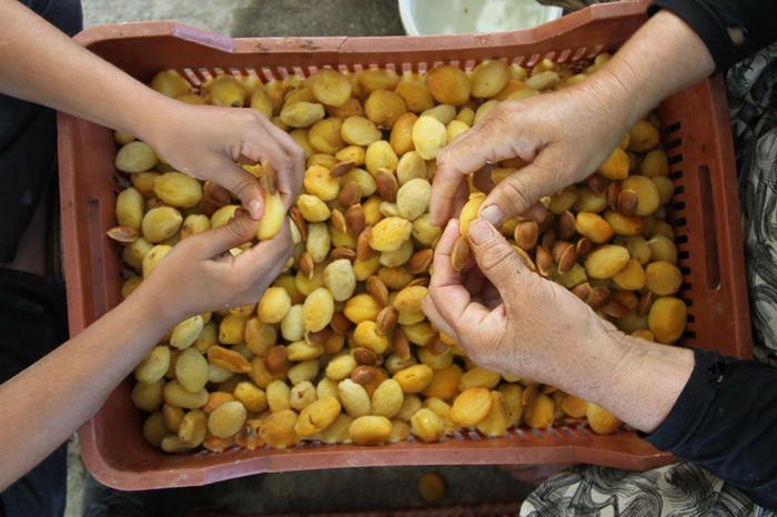 Türkiye'nin önemli kayısı üretim merkezlerinden Malatya'da hasadı tamamlanan kayısılar, çekirdeklerin çıkartılmasını sağlayan; bölgede "patik" adı verilen işlemlerden geçiriliyor.