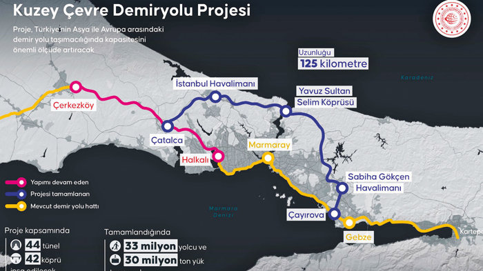 İstanbul Kuzey Demir Yolu Geçişi Projesi'ne yönelik finansman Dünya Bankası İcra Direktörleri Kurulu tarafından onaylandı. Söz konusu kredi, Gebze-Sabiha Gökçen Havalimanı-Yavuz Sultan Selim Köprüsü-İstanbul Havalimanı-Halkalı Demir Yolu Hattı'nın inşası için kullanılacak. İstanbul Boğazı için alternatif bir demiryolu bağlantısı sağlayacak projeyle Türkiye'nin ulusal ve kıtalar arası ulaştırma koridorlarındaki rekabet gücü artırılacak ve İstanbul'un küresel aktarma merkezi vasfı güçlendirilecek. Dünya Bankası tarafından sağlanacak krediye ilaveten, diğer uluslararası finans kuruluşlarından da kaynak sağlanacak. Nihai aşamada proje için temin edilecek toplam uygun koşullu dış finansman tutarı yaklaşık 6,75 milyar dolara ulaşacak.