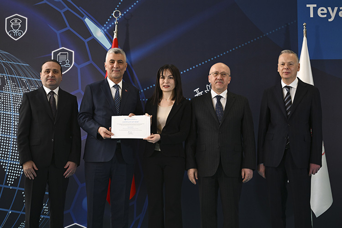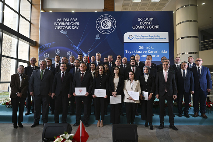 Bakan Bolat, konuşmaların ardından, görevlerini yaparken gösterdikleri özveri nedeniyle gümrük personelleri ile gümrük idaresine destek sağlayan paydaşlara verilen "2026 Dünya Gümrük Günü Liyakat" sertifikalarını takdim etti.