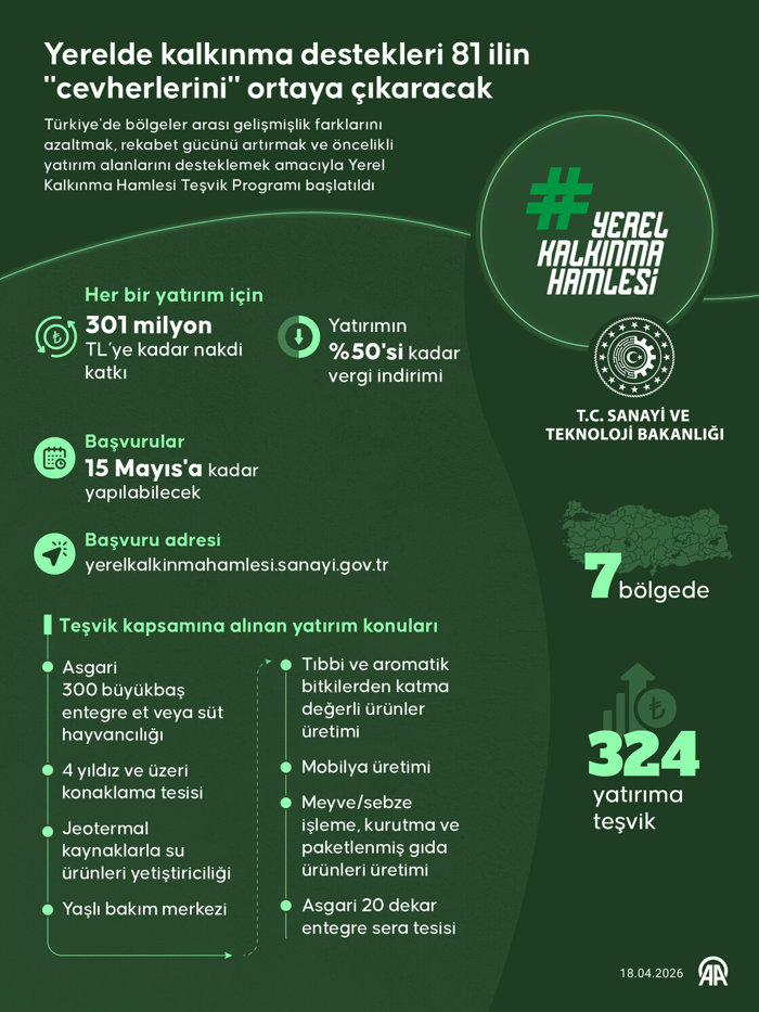 Türkiye'de bölgeler arası gelişmişlik farklarını azaltmak, rekabet gücünü artırmak ve öncelikli yatırım alanlarını desteklemek amacıyla başlatılan Yerel Kalkınma Hamlesi Teşvik Programı, 81 ilin potansiyelini gün yüzüne çıkararak ülkenin gelişimine katkı sağlayacak.