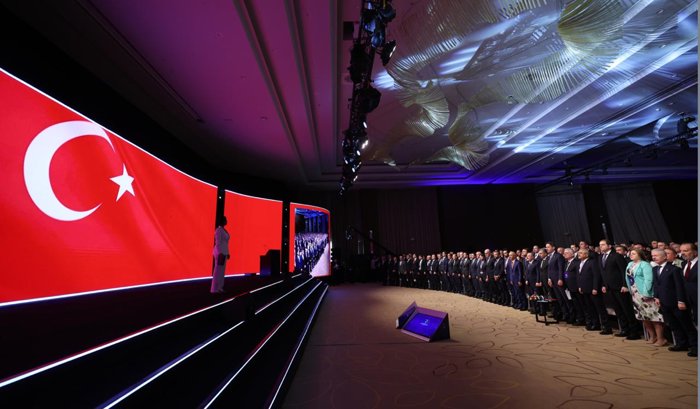 "Elektrikte 90 bin megavattan fazla yeni kurulu gücü devreye aldık. Milli Enerji ve Maden Politikamız ile enerji piyasalarımız ikinci dönüşüm sürecine girdi. Politikamızın 10. yılında, petrol ve doğal gaz aramacılığında dünyanın en büyük dördüncü filosuna sahip ülkesiyiz. Fatih, Yavuz, Kanuni, Abdülhamid Han, Yıldırım ve Çağrı Bey ile sadece Mavi Vatan'da değil Hint Okyanusu'nda, Somali açıklarında arama yapabilen bir ülke haline geldik. Milli Enerji ve Maden Politikamız çerçevesinde sadece denizlerle sınırlı kalmadık. Karalarda daha önce hiç gidilmedik yerlere gittik. Girilemez denen yerlerde sondaj yaptık, yapmaya devam ediyoruz. Sakarya Gaz sahasında yaptığımız tarihi keşifle bugün günlük 9,5 milyon metreküp gaz üretiyor, Gabar'da günlük 81 bin varil üretim ile ülkemizin en kaliteli petrolünü çıkarıyoruz."