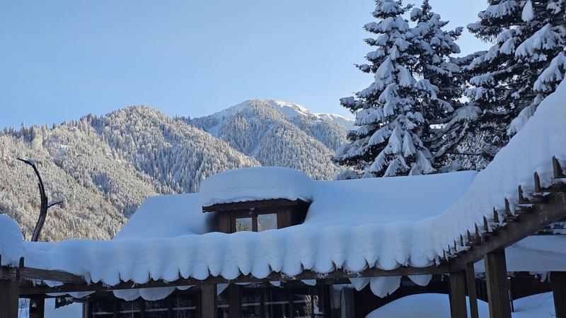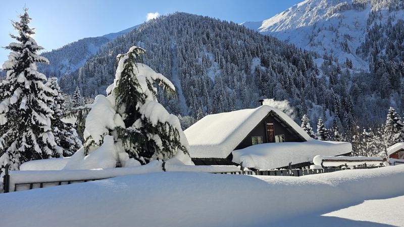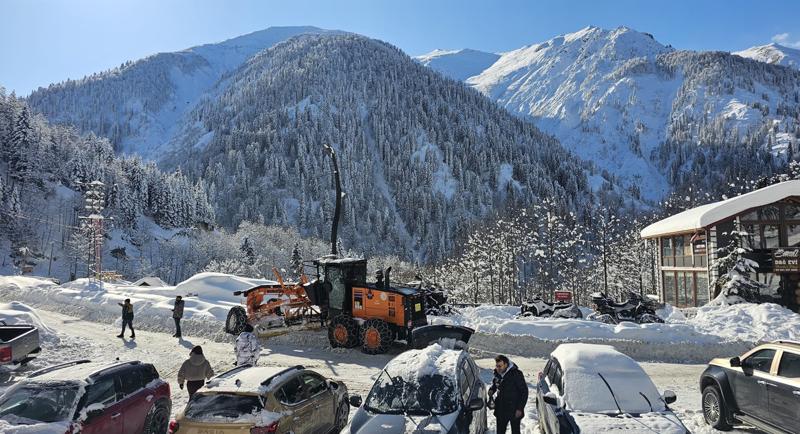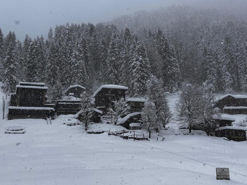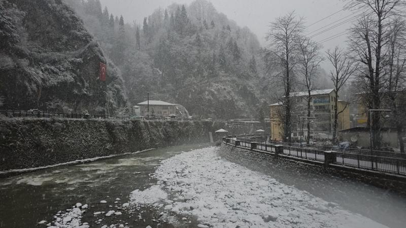 Doğu Karadeniz bölgesinin önemli turizm merkezlerinden olan Çamlıhemşin ilçesine bağlı Ayder Yaylası'nda da kar yağışı devam ediyor.