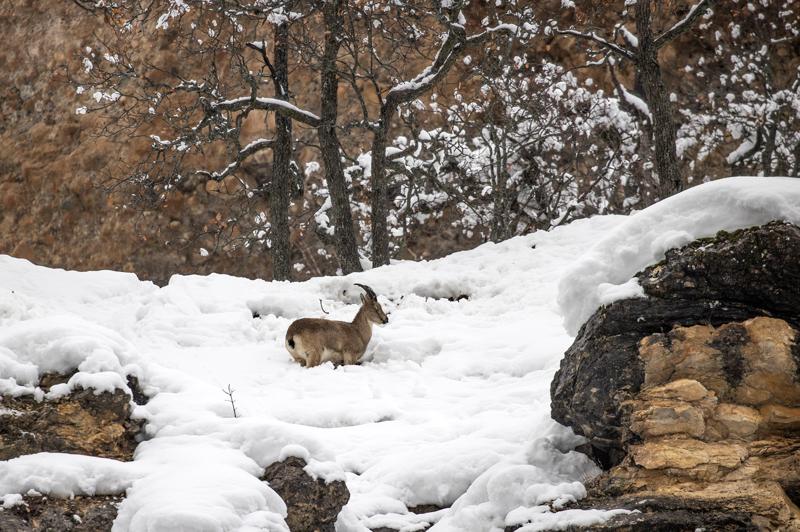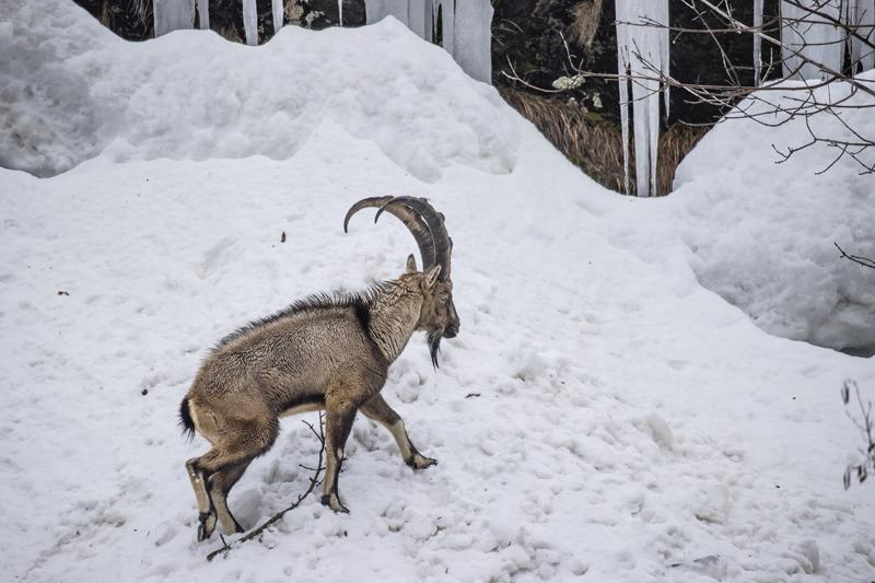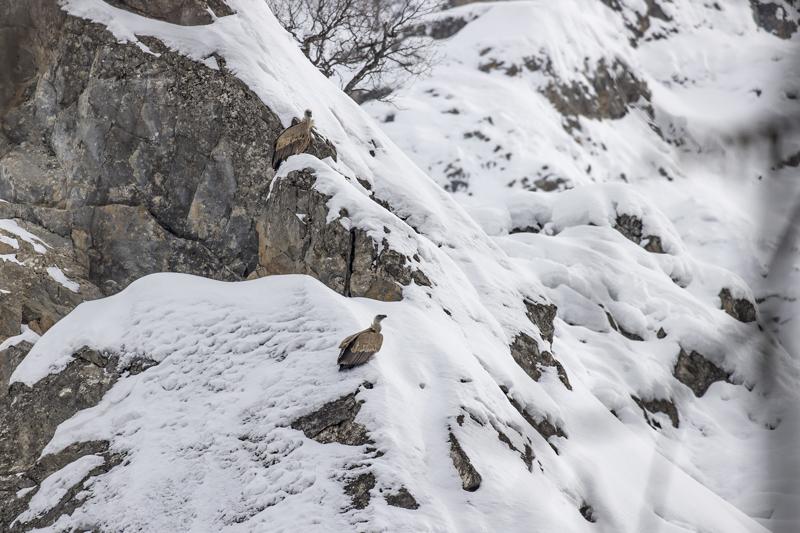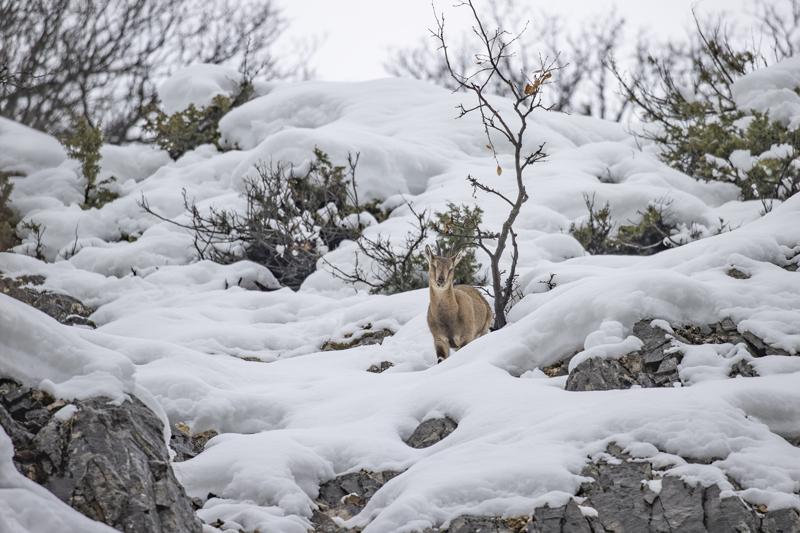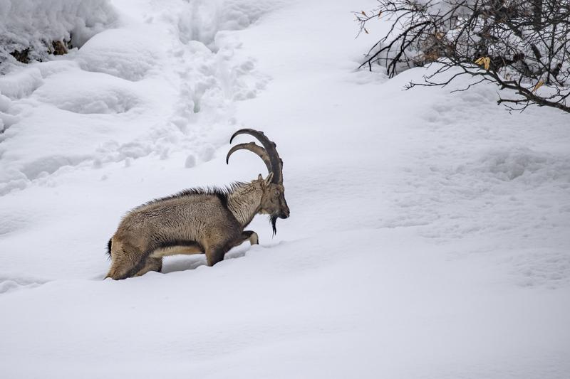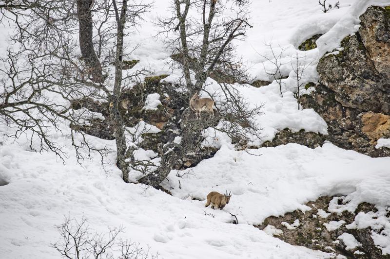 Kar kalınlığının yer yer 2 metreyi aştığı milli parkta, şu sıralar yaban keçileri, domuzlar ve akbabalar besin bulmakta zorlanıyor.