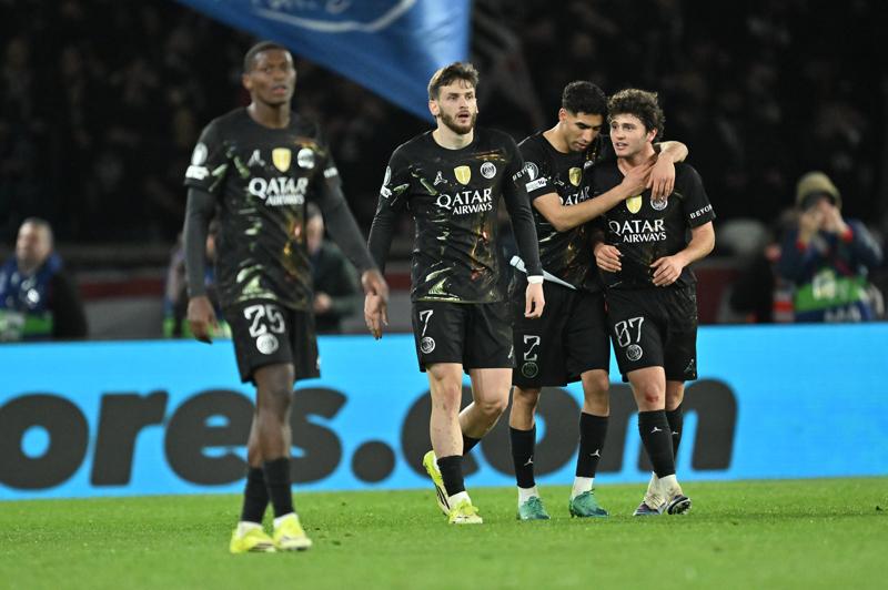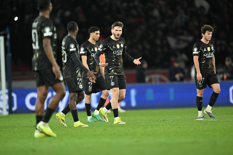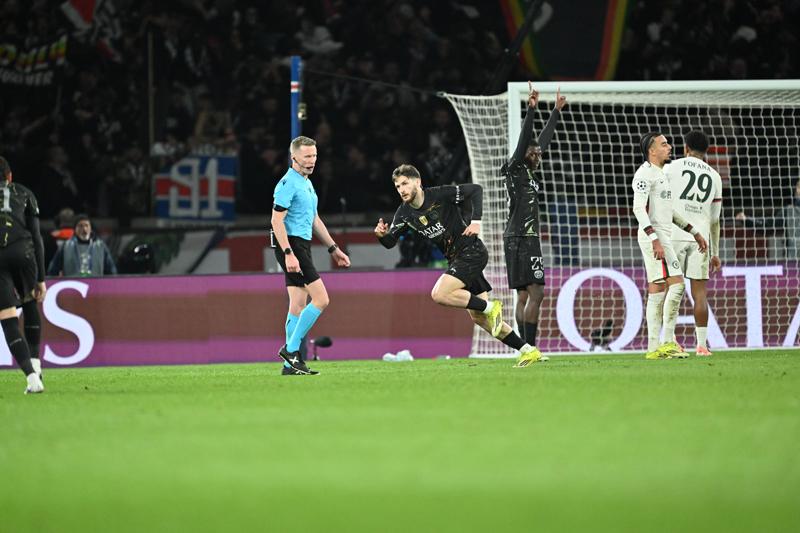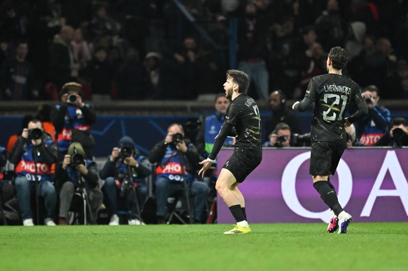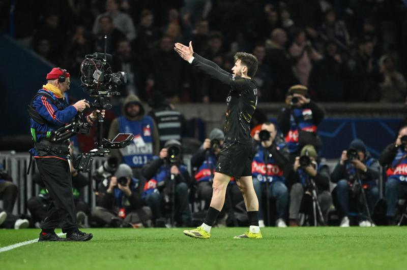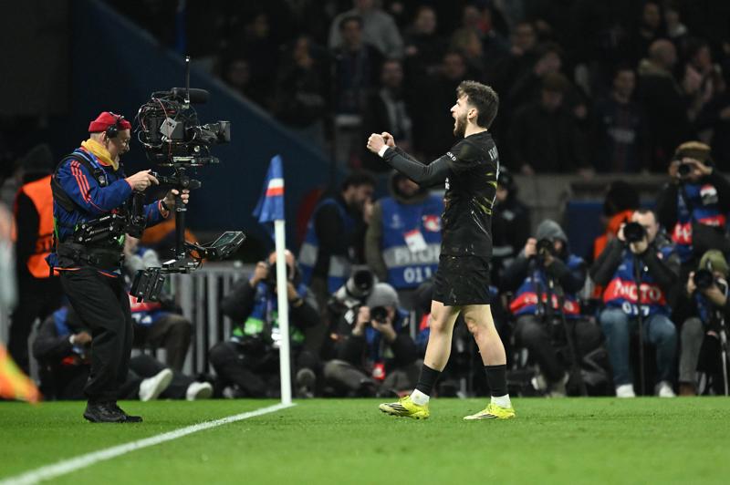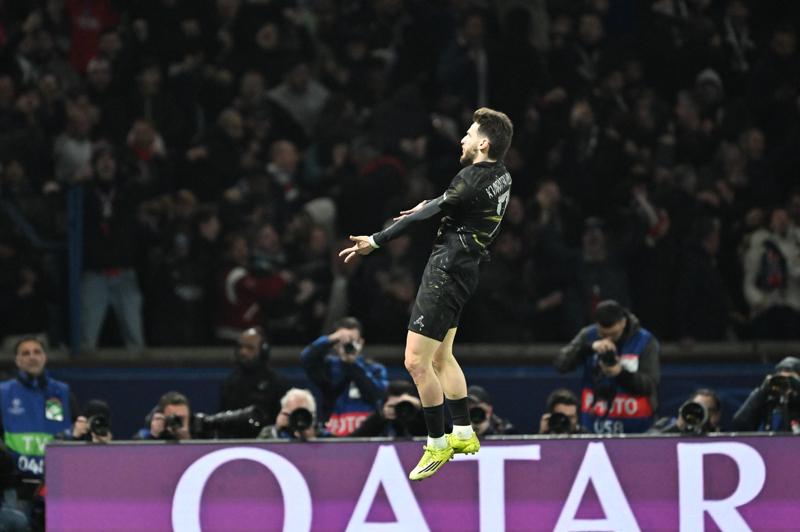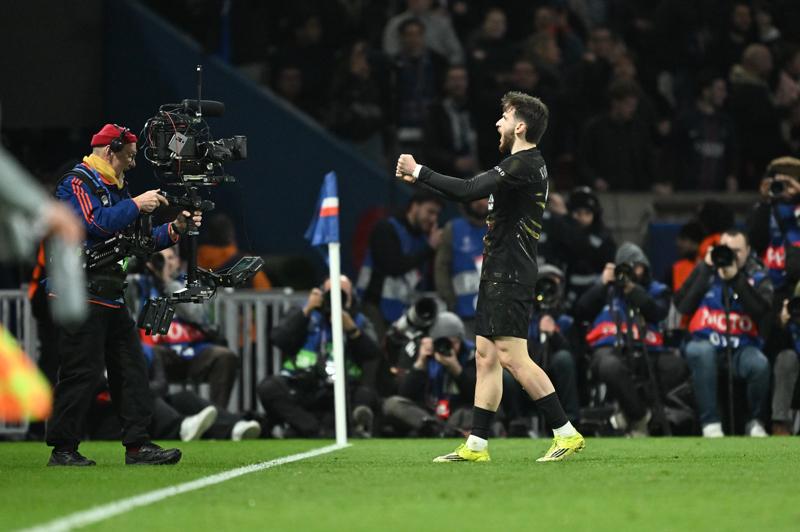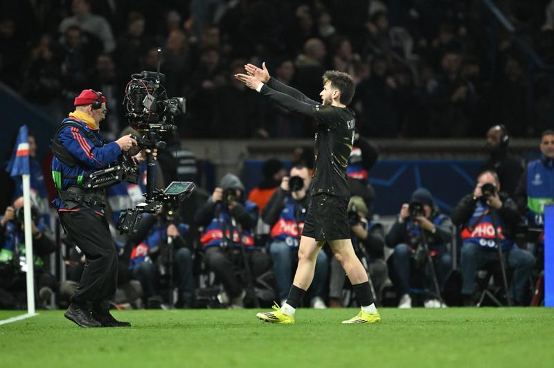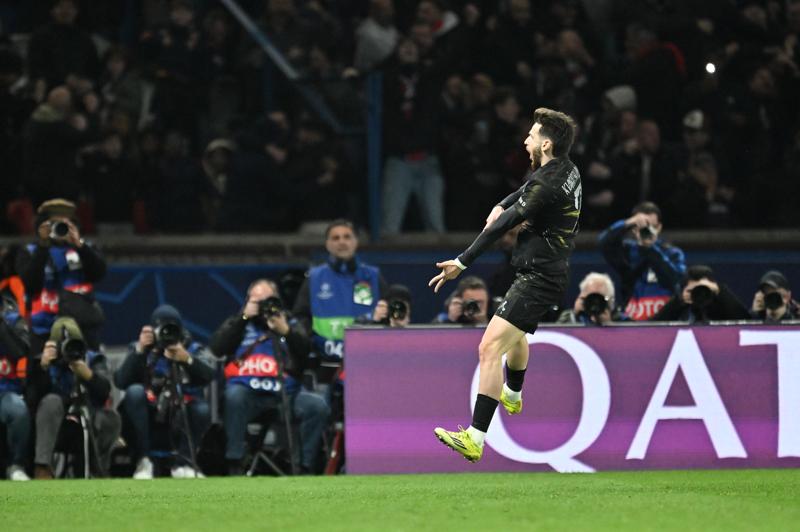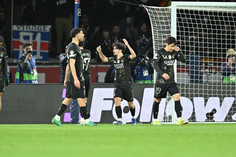 Karşılaşma sonunda Chelsea takımını 5-2 mağlup eden PSG takımı oyuncusu Kvaratshelia (7), galibiyet sevinci yaşadı.
