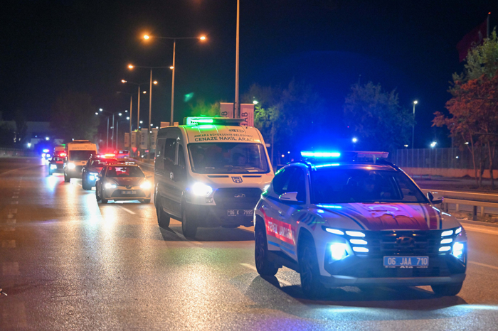 Adli Tıp Kurumunun önüne kadar uzanan güzergahta trafik polisleri, konvoyu asker selamıyla karşıladı.