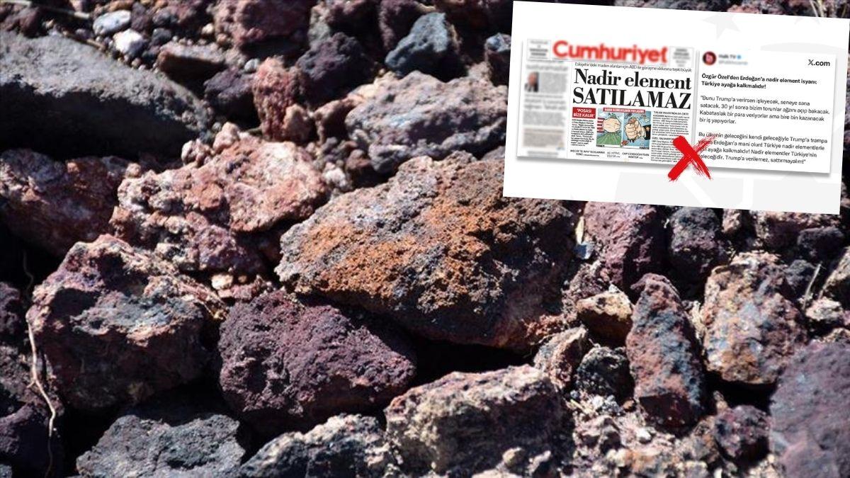 Cumhurbaşkanlığı İletişim Başkanlığı Dezenformasyonla Mücadele Merkezi'nin (DMM), NSosyal hesabından yapılan açıklamada, bazı basın yayın organlarında yer alan "Eskişehir Beylikova Nadir Toprak Elementleri sahasının ABD'ye devredileceği" yönündeki iddialar tamamen asılsız olduğunu bildirilerek, şu ifadeler kullanıldı: