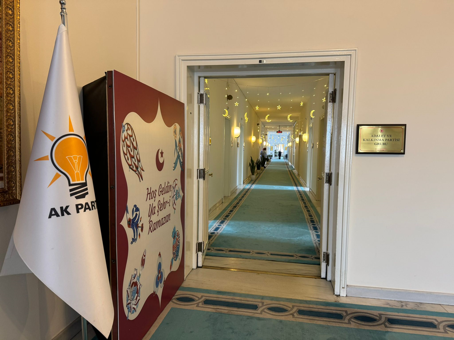 AK Parti TBMM Grubunun bulunduğu koridor, ramazan ayı dolayısıyla süslendi.