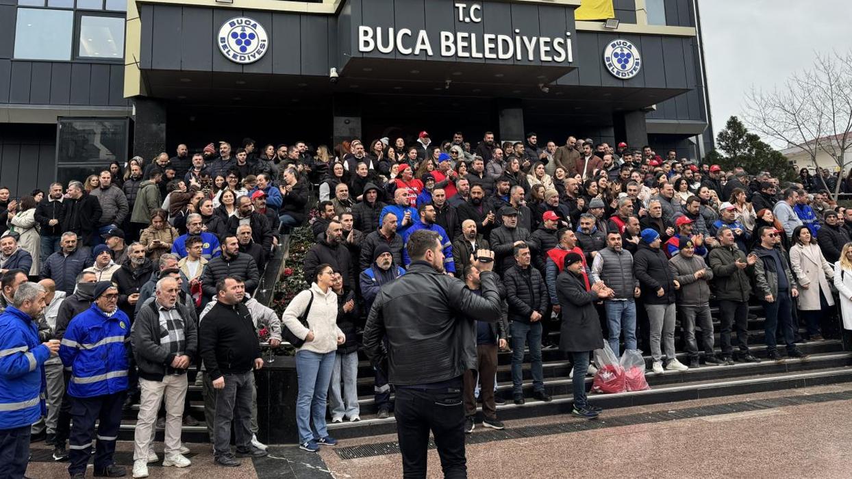 Buca Belediyesinde çalışan 1886 işçi, fazla mesai ücreti ve yan haklar gibi alacakları ödenmediği gerekçesiyle iş bırakma eylemine başladı.