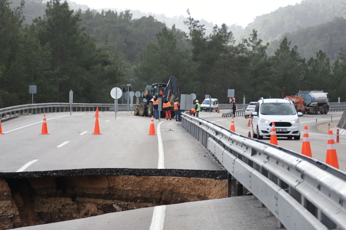 Öte yandan, Kemer Kaymakamı Ahmet Solmaz ve Kumluca Kaymakamı Bahadır Güneş, göçük ve heyelan oluşan kara yolunda incelemelerde bulunarak yetkililerden bilgi aldı.