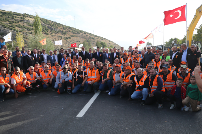 Uraloğlu, açılışın ardından yolun yapım aşamasında çalışan Karayolları Genel Müdürlüğüne bağlı işçilerle hatıra fotoğrafı çektirdi.