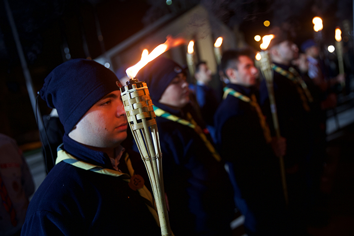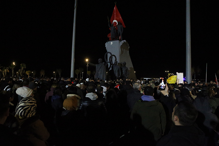 Tevfik Temelli Caddesi'ndeki Sümerpark girişinde toplanan vatandaşlar, meşale yakarak saygı duruşunda bulundu.