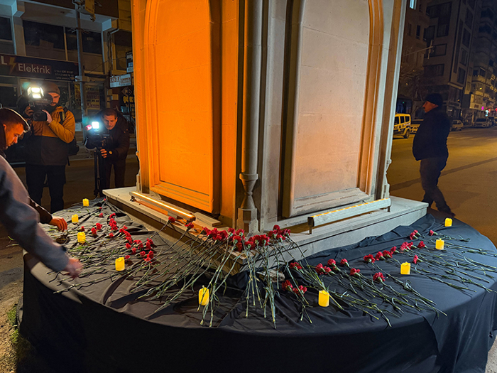 Konuşmanın ardından anmaya katılanlar, Hasan Çenet Caddesi'nde "sessiz yürüyüş" yaptı, Deprem Şehitleri Anıtı'na karanfil bıraktı.