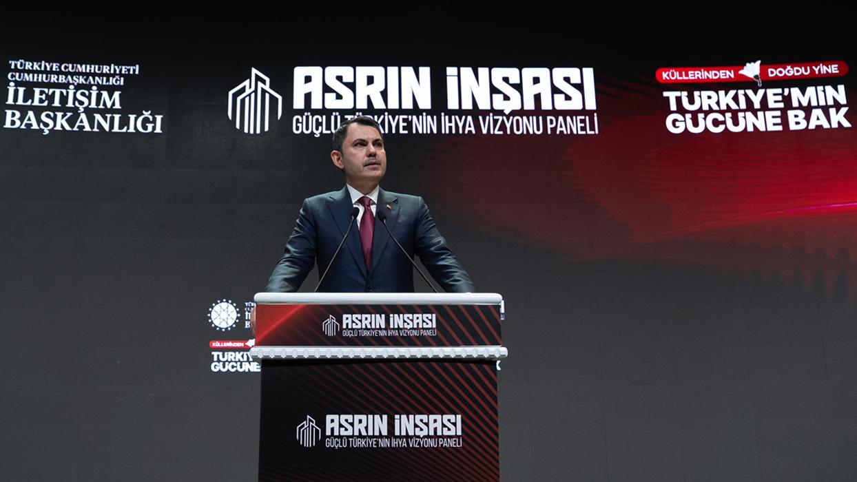 Çevre, Şehircilik ve İklim Değişikliği Bakanı Murat Kurum, İletişim Başkanlığı tarafından düzenlenen "Asrın İnşası Güçlü Türkiye'nin İhya Vizyonu Paneli"nde yaptığı konuşmada, 6 Şubat 2023'teki Kahramanmaraş merkezli depremlerden 11 ildeki 14 milyon kişinin doğrudan etkilendiğini belirtti.