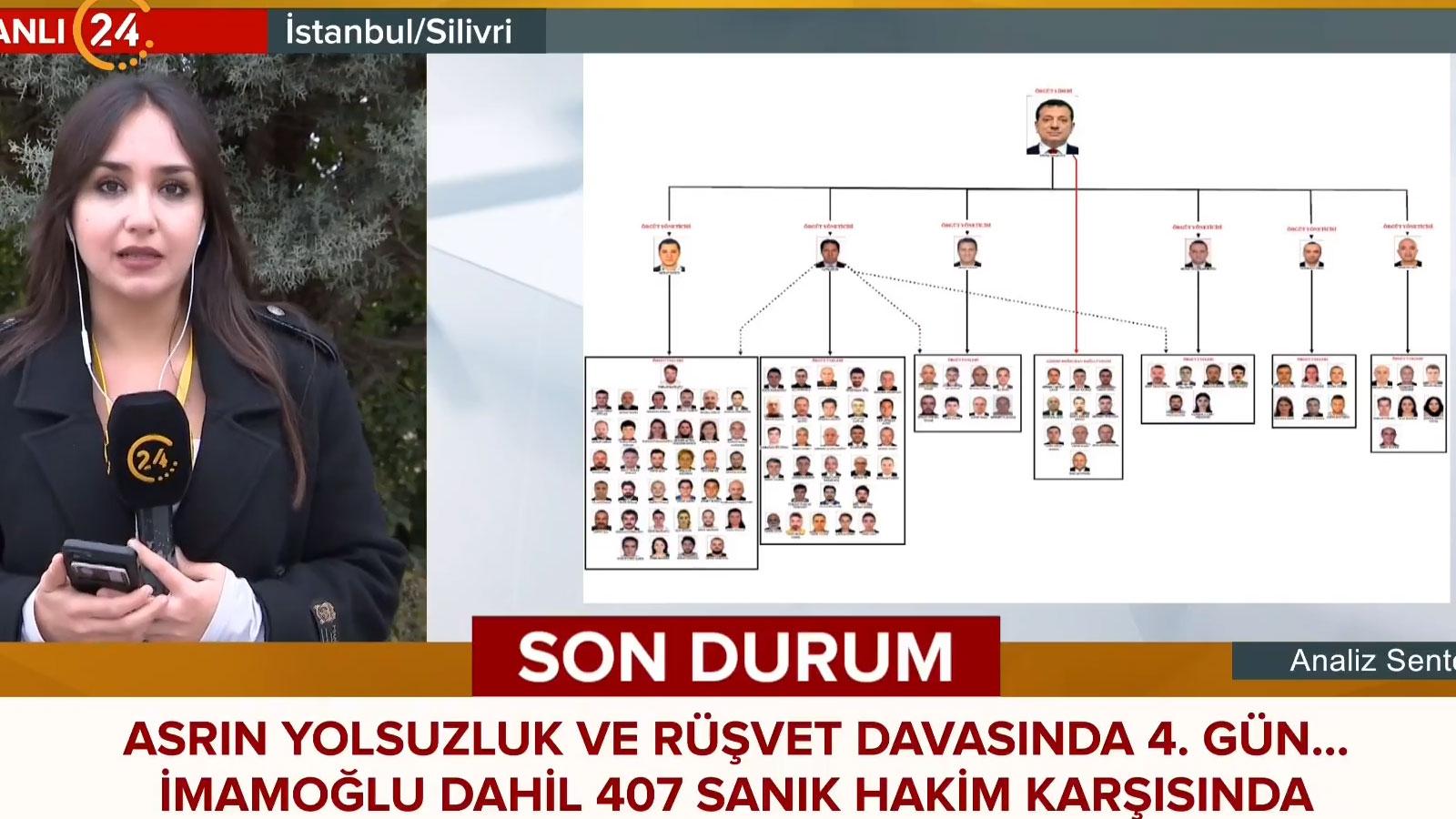 İstanbul 40. Ağır Ceza Mahkemesince, Marmara Kapalı Ceza İnfaz Kurumunun karşısındaki salonda görülen duruşmada Ekrem İmamoğlu suç örgütü davasında, 107'si tutuklu toplam 407 sanık dördüncü gün hakim karşısına çıkıyor.