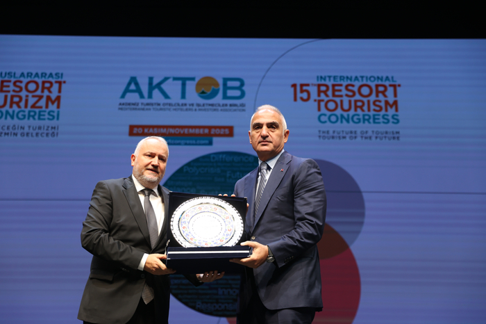Kültür ve Turizm Bakanı Mehmet Nuri Ersoy, Antalya'daki bir otelde bu yıl 15'incisi düzenlenen Uluslararası Resort Turizm Kongresi'nde yaptığı konuşmada, sektörün geleceğini, sürdürülebilirlik politikalarını, pazar çeşitliliğini ve yeni trendleri değerlendirmek, fikir alışverişi, güçlü iletişim, işbirliği ve tecrübe paylaşımı için kongrenin önemli olduğunu söyledi.